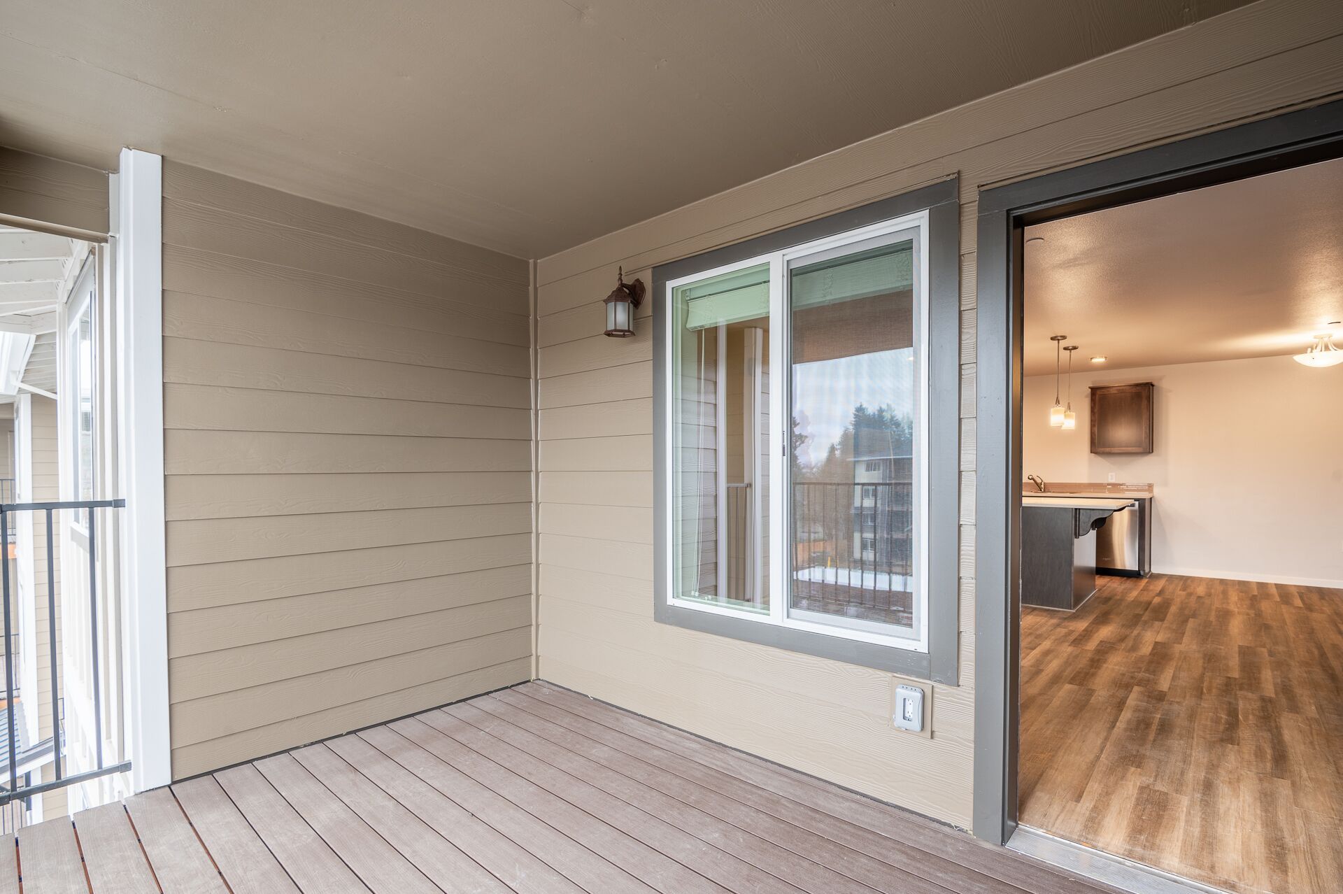 Beautiful corner top floor apartment home. Featuring luxury vinyl plank flooring everywhere but the bedroom, stainless steel appliances with a built in microwave, large kitchen island, quartz countertops with tile backsplashes, an electric fireplace, air conditioning, large covered patio with storage closet, 2 large bedroom windows, linen closet, stackable washer and dryer included, large bathroom and 1 reserved covered parking space.